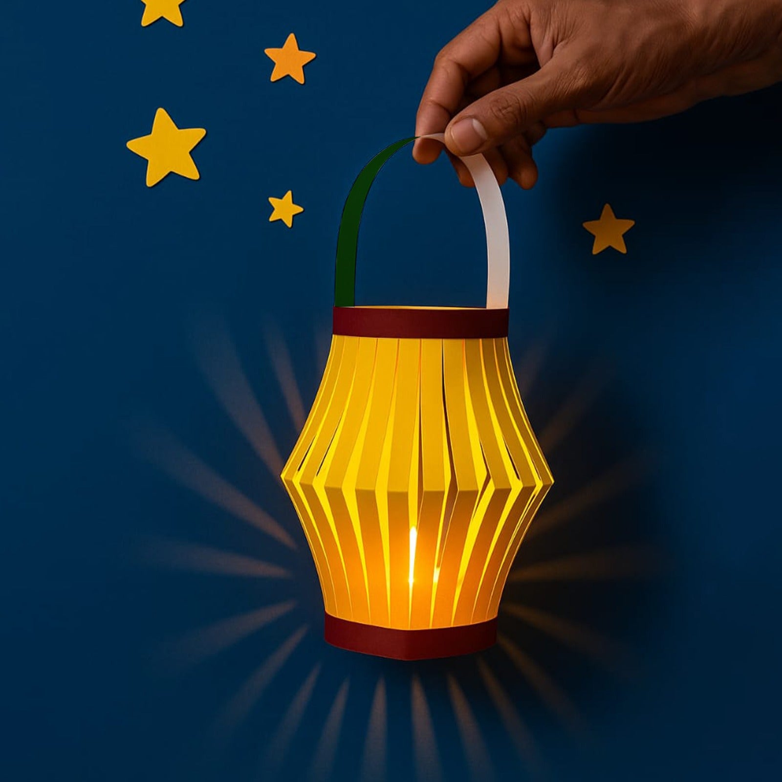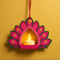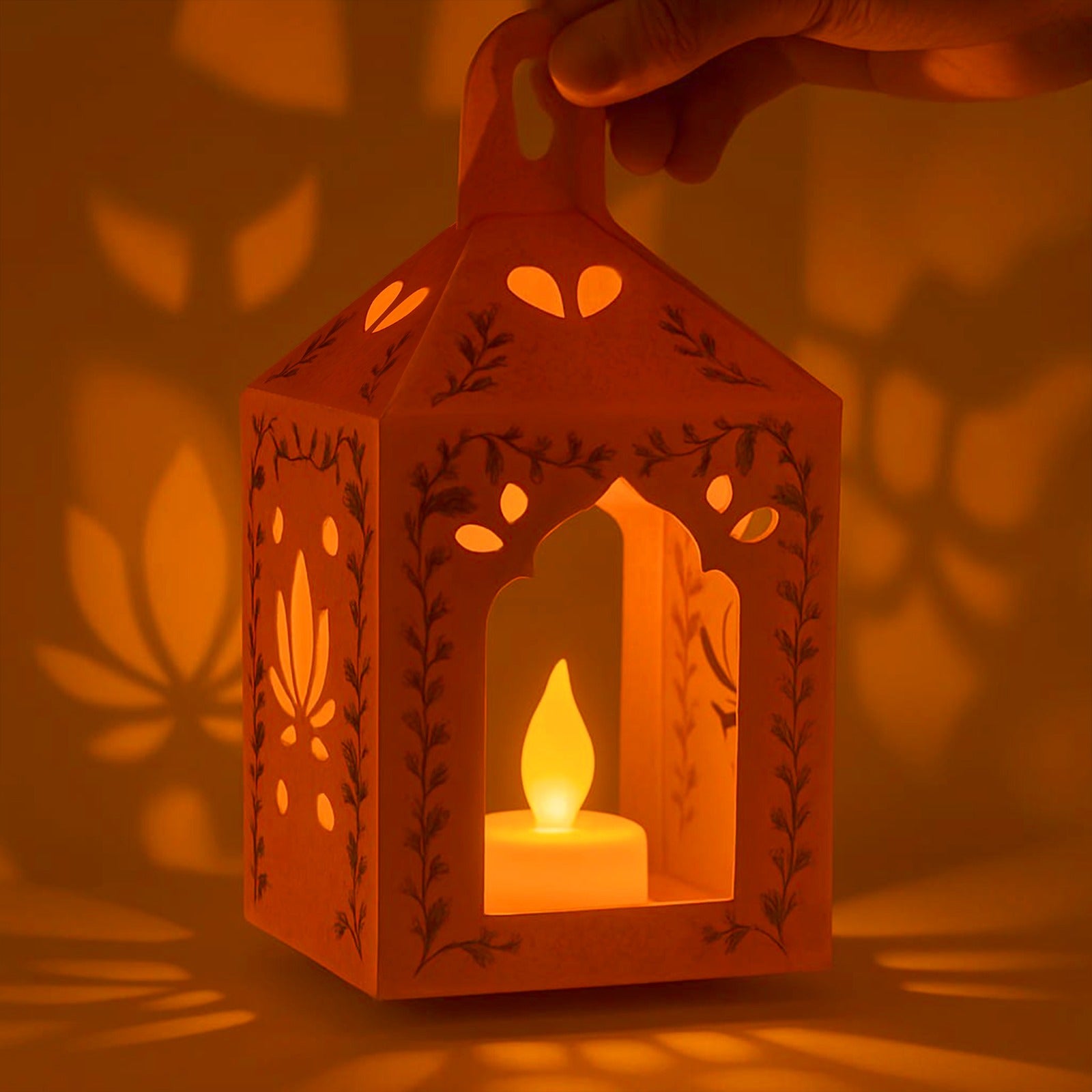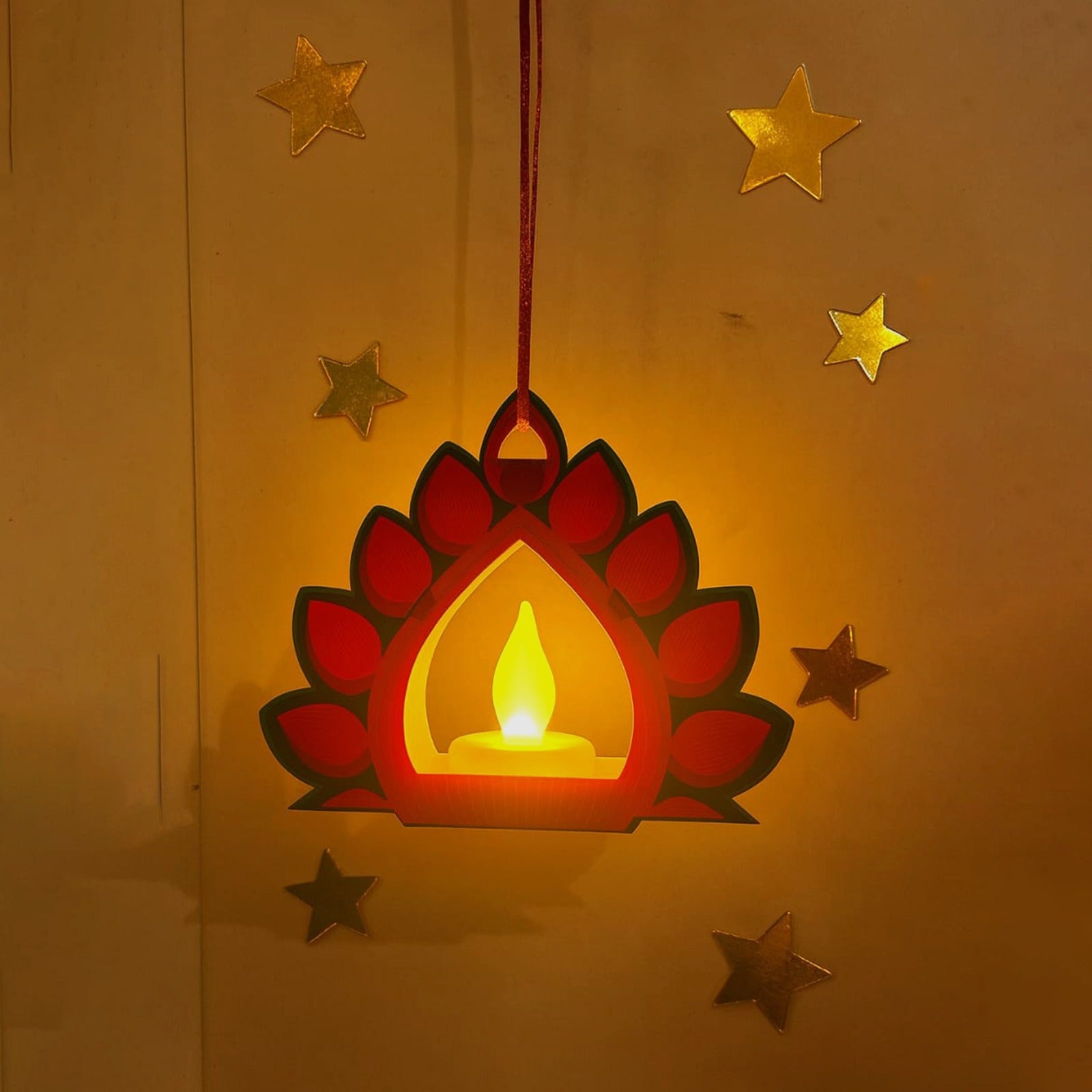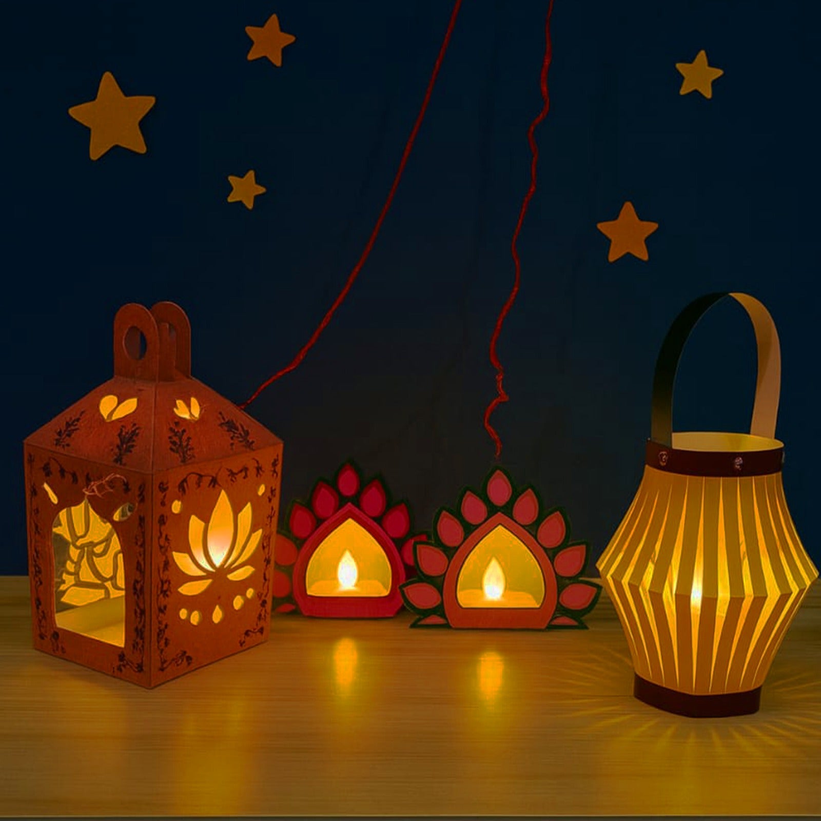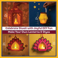 2 Electric Tea Lights, 2 Hanging Lotus Diyas, 2 Lantern, Ribbon, Glue & Stickers